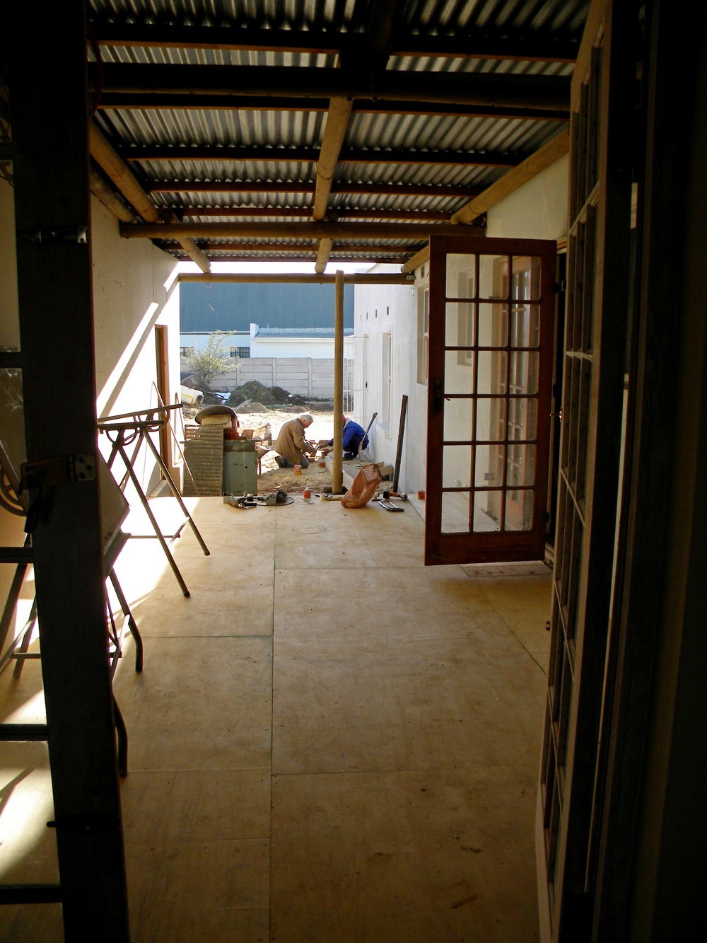 Pieter is the master builder, the organizer, the teacher in woodwork, plumbing, building, painting... and Jerome and Floris, his eager trainees, have been working at the Breede Centre for the past two months. You hear and see Pieter instructing, demonstrating, overseeing, trusting, correcting and praising. Not only do they learn practical skills from Pieter but they also get to know the tools they need and how to take care of them. They learn about planning, preparing, organizing, executing and tiding up a job and to think through any problems encountered. When he is not around Dawid, his assistant, takes over and guides his young peers in more than just a practical way. While they work they talk about what concerns them as young men or they listen to the radio.